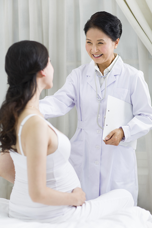 Cheerful Chinese doctor and pregnant woman