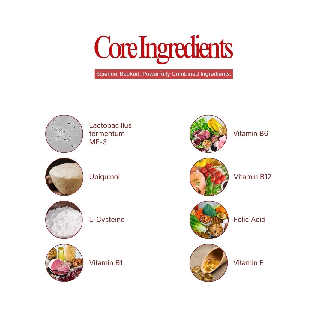 Lactobacillus fermentum ME-3 is a probiotic strain which helps in the production of glutathione in the body. Each tablet contains 8 billion viable cells of L.fermentum ME-3. This probiotic strain supports the three pathways of glutathione production which are the following: 1) ME-3 can directly synthesize glutathione 2) ME-3 extracts available glutathione molecules from the surrounding environment and 3) ME-3 recycles oxidized glutathione (GSSG) back to its active state (GSH). A balance of GSH/GSSG is essential for proper homeostasis for the facilitation of cellular performance, survival, and stabilization of the biomolecular spectrum. These pathways provide support for the essential functions such as antioxidant activity, heart-health support, detoxification processes, healthy liver function, and immune system support. It is also all-natural and non-GMO.